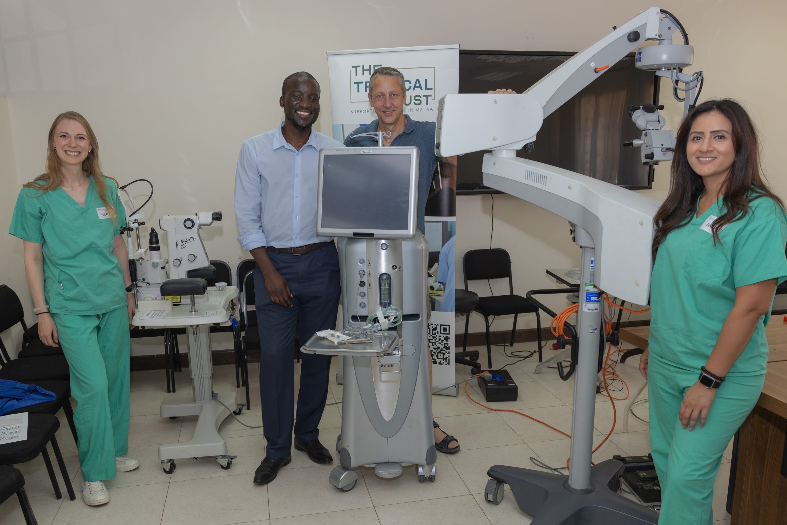However, this year marks a major milestone, with the donation of advanced ophthalmic equipment comprising a Selective Laser Trabeculoplasty (SLT) machine for Glaucoma treatment, an operating microscope for theatre use, and an anterior Vitrectomy machine; the first of its kind at QECH.
